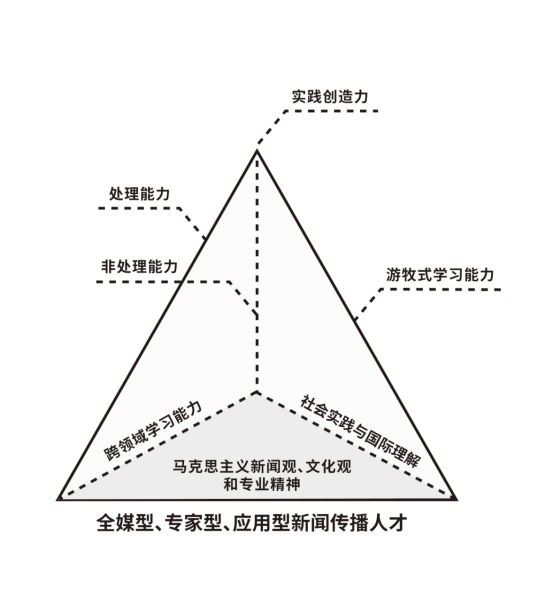 一些高校传媒专业人才培养也注重实践能力培养,但没有把实践能力进行结构化的细化,核心知识、核心技能、核心思维三者考量不够全面,每个项目都是什么也没有具体化。一些高校考虑到传媒人才的后劲与文化功底,提倡培养“厚基础、宽口径”的人才,但如何有效地培养学生人文素养,亦没有有效的路径。“传媒应用型人才的331素质结构”体现了专业素养与人文素养的统一。