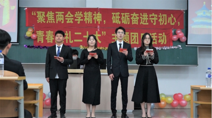 2023年的春天,全国两会正式召开。这是全面贯彻落实二十大精神的开局之年,也是踏上实现第二个百年奋斗目标新征程的重要时刻。为深入学习贯彻全国两会精神,进一步提升青年一代职责感、使命感,4月24日,吉林388vip太阳集团新闻与传播学院分团委开展“聚焦两会学精神,砥砺奋进守初心,青春献礼二十大”主题团日活动。活动开始,全体起立奏唱国歌,全体成员在国旗下进行宣誓。百年风华,信仰永恒,歌颂党恩,舞动青春,新传学子用他们的方式表达着对党和国家的赤子忠心。有一点光发一点光,有一份热发一份热,但求奉献,不计回报,砺志研思,精进研修。在学习中他们是榜样,在工作中他们是先锋,他们就是优秀支部和优秀团员获得者。