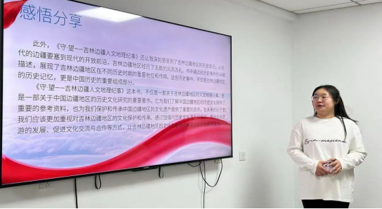 窦水悦同学围绕书中的章节,带领大家细致解读书中展现的边疆图景。从长白山的林海雪原到图们江畔的渔猎村落,文字所构筑的立体画面让吉林这片土地不再遥远,成为在场每一位同学心中的“精神故乡”。