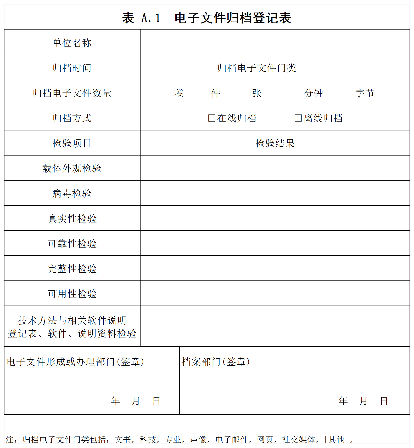 4.4 应明确各门类电子文件及其元数据的归档范围时间、程序、接口和格式等要求。