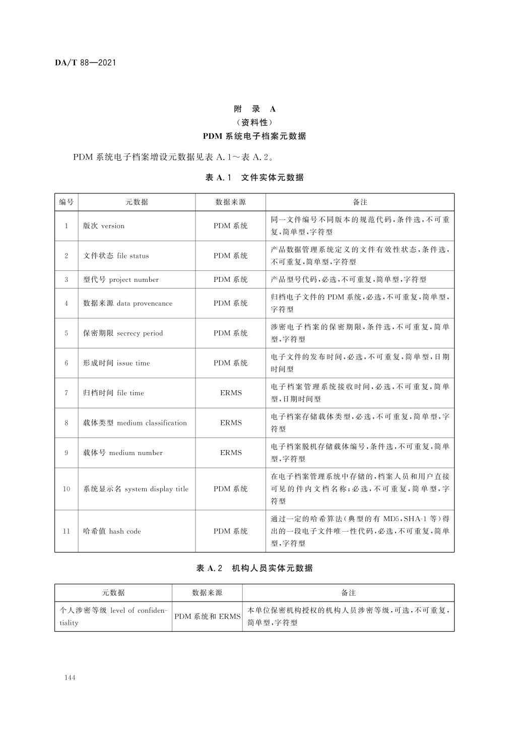 DA/T 88-2021 产品数据管理(PDM)系统电子文件归档与电子档案管理规范