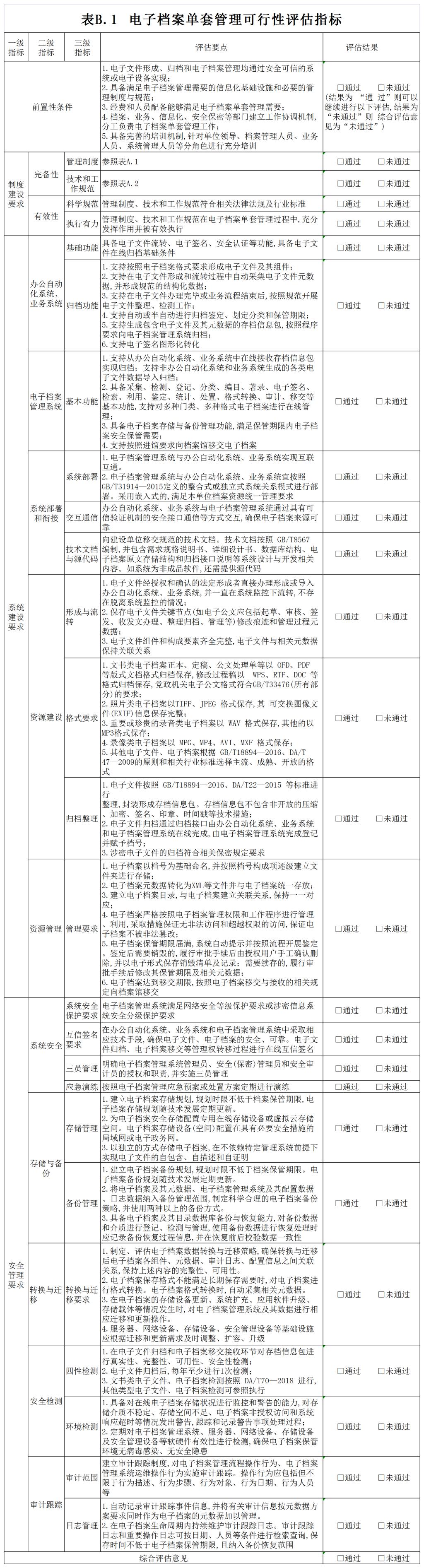 ±í B.1 ¹æ¶¨Á˵ç×Óµµ°¸µ¥Ì×¹ÜÀí¿ÉÐÐÐÔÆÀ¹À¸÷¼¶Ö¸±ê¼°ÆÀ¹ÀÒªµãºÍÆÀ¹À½á¹û¡£