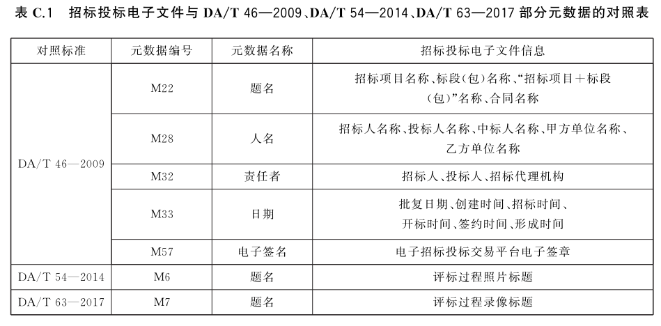 C.1 бͶļ DA/T462009DA/T542014DA/T632017ԪݵĶձ