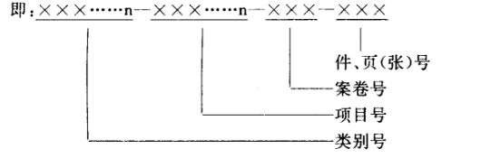 4.3 第三种结构为:类别号——项目号——案卷号——件、页(张)号。