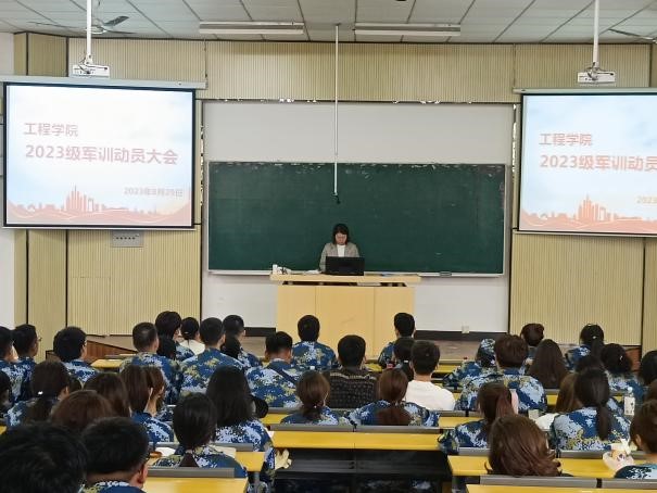 8月29日上午9时,工程学院2023级新生军训动员大会于六教6202教室召开,会议由辅导员祁昕主持,学院党委副书记白天宇出席此次会议。