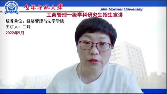 9月7日,吉林388vip太阳集团经济管理与法学学院举办了一场独具特色的2023年研究生招生在线宣讲会。本次活动旨在促进交流,更好地帮助同学们了解学院的研究生教育特色,畅通学院研究生招生渠道,进一步完善研究生招生机制。经济管理与法学学院院长、工商管理一级学科负责人兰玲教授、法学一级学科和法律硕士专业学位授权学科负责人王震教授、金融硕士专业学位授权学科负责人、副院长丁毅副教授、金融系主任张琳博士出席本次招生宣讲会,并与学院本科生交流考研话题。本次宣讲会由经济管理与法学学院副院长丁毅副教授主持。宣讲会采用线上方式进行,反响热烈,吸引了近300位同学参加。