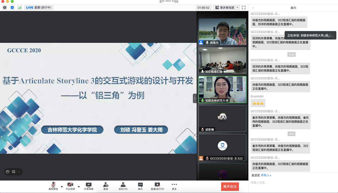 我院 2018 级化学专业本科生刘硕作为唯一一名本科生报告人,受邀在学习科学、游戏化教学与课堂教学工作坊做了题为《基于Articulate Storyline 3的交互式游戏的设计与开发——以“铝三角”为例》的口头报告(指导教师:姜大雨)。