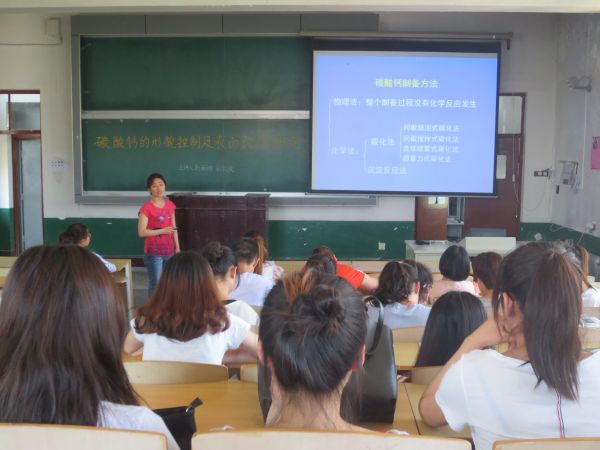 2014年6月4日下午,赵丽娜副教授在4教4431阶梯教室作了题为《碳酸钙的形貌控制及表面改性研究》的学术报告。