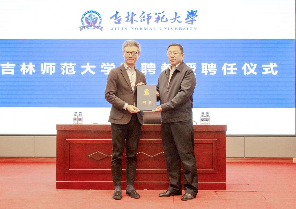 杨小天为尚辉教授颁发聘书。尚辉教授受聘后表示,一定不负学校信任,积极为学校学科建设与发展做出努力与贡献。
