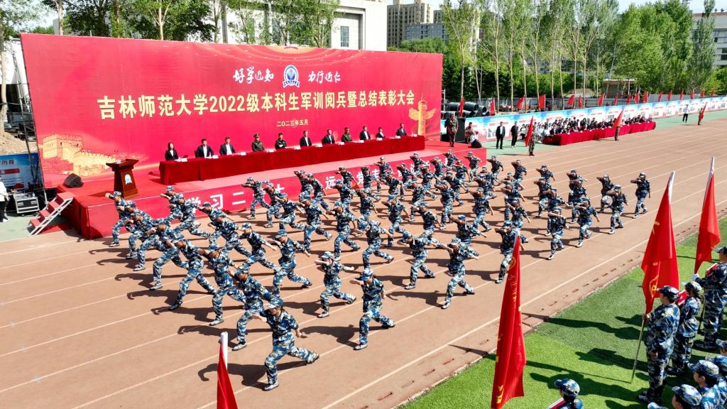 5月19日,学校在运动场举行2022级本科生军训阅兵暨总结表彰大会。党委书记王喜库、校长杨小天,党委副书记陈煜平、赵经武,纪委书记、监察专员于荔欣,党委常委、副校长左今明、邢宇、王菲菲;武警四平支队政委李阳明、铁西区人民武装部部长解志友、驻平某部队副旅长王勇出席大会。相关部门负责人、各学院党政负责人、全体辅导员及2022级全体本科生参加大会。