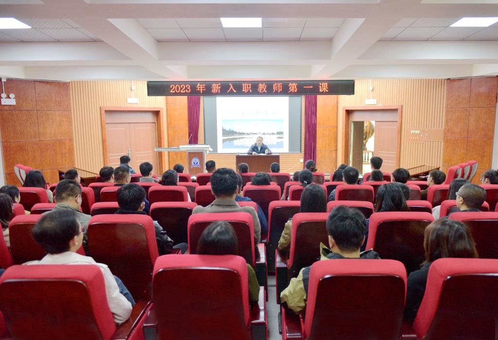 10月16日,校长杨小天在第十教学楼为2023年新入职教师上了一堂深刻生动的思政课。学校相关部门负责人、2023年新入职全体教师聆听报告。