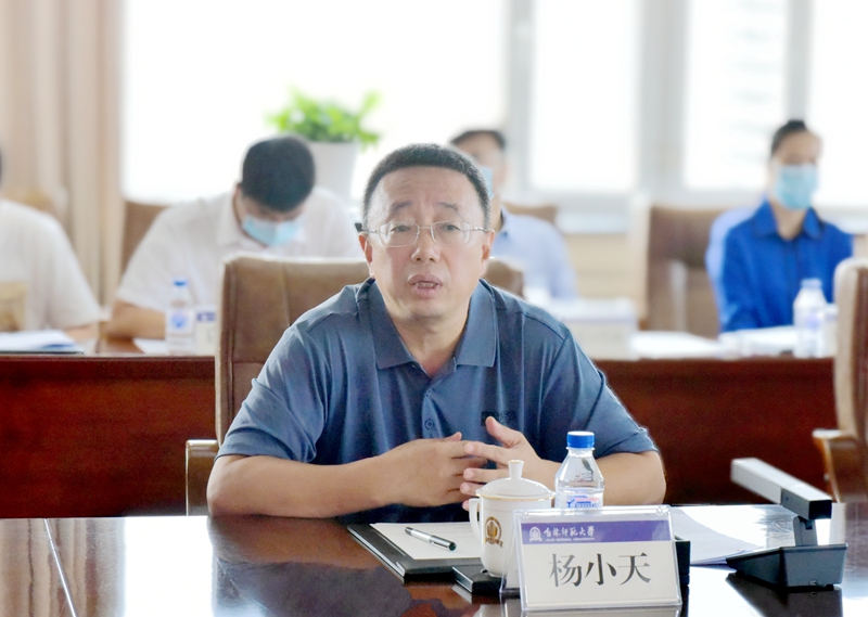 杨小天就学校2021年秋季开学返校和校园疫情防控工作开展情况作汇报。他表示,学校高度重视秋季开学返校和疫情防控工作,始终坚持“稳中求进”工作总基调,牢固树立“底线思维”,做到思想统一、领导有力,响应及时、扎实开展,制定一系列有的放矢、切实有效的制度方案,构建起严谨高效的工作机制,确保科学防控、精准防控、有序防控。他详细介绍了学校贯彻落实省教育厅、省卫生健康委员会文件精神的情况,并结合学校工作实际,重点汇报了校园疫情防控工作、疫情防控组织领导机构建设和责任落实、开学返校工作方案和应急处置预案制定、教职员工和学生管理、教学准备、校园出入管理等情况。