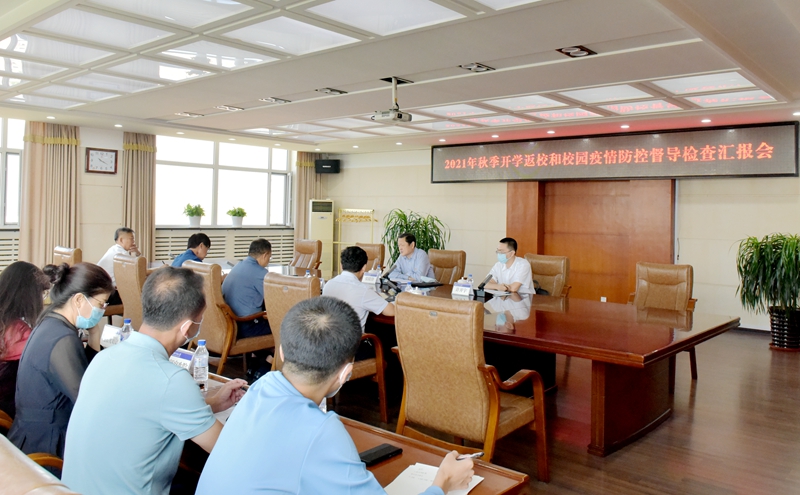 9月1日,省委教育工委专职副书记张殿锋、统战部长许开宇一行来我校督导检查2021年秋季开学返校和校园疫情防控工作。学校在第一教学楼八楼会议室举行汇报会。校长杨小天,党委副书记刘万民,党委常委、副校长张作岭,副校长赵经武以及学校疫情防控专项工作组负责人参加会议。