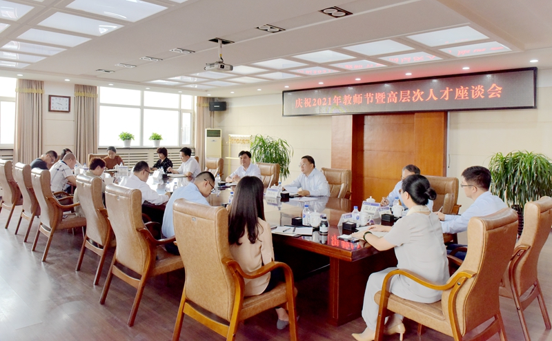 9月8日,学校在第一教学楼八楼会议室举行庆祝2021年教师节暨高层次人才座谈会。党委书记王喜库、校长杨小天出席会议,高层次人才代表及相关部门负责人参加座谈会。