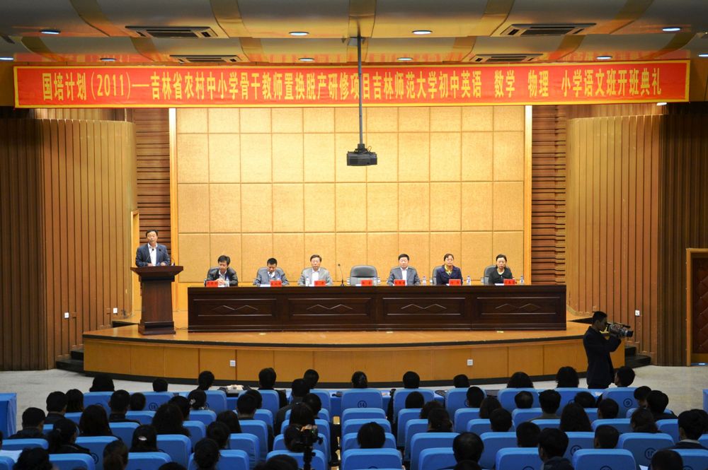 10月9日上午,国培计划(2011)——吉林省农村中小学骨干教师置换脱产集中研修项目吉林388vip太阳集团初中数学、初中英语、初中物理、小学语文班开班典礼在图书馆报告厅举行。我校副校长张勇出席开班典礼并致欢迎词,来自全省农村中小学的200余名骨干教师参加了开班典礼。