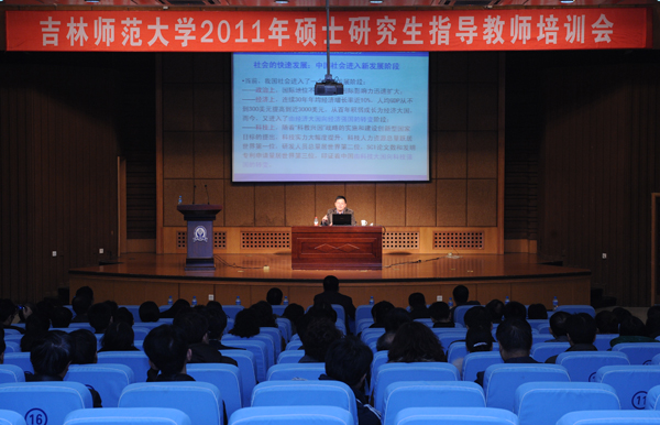 为明确导师职责,提升导师素质,加强导师队伍建设,提高研究生培养质量,11月16日下午,我校2011年硕士研究生指导教师培训会在图书馆报告厅举行。东北388vip太阳集团博士生导师、研究生院副院长饶从满教授应邀作了专题报告。校党委书记张波,校党委副书记高林波,副校长杨景海出席报告会。全体硕士研究生导师、研究生秘书和研究生辅导员参加了本次培训会。
