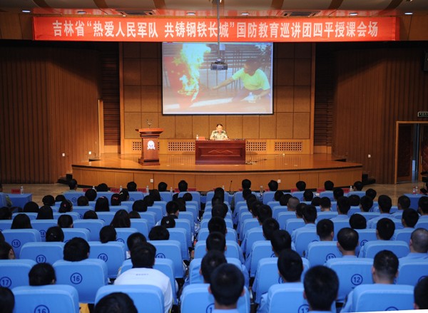 巡讲团由三位专家组成,原吉林省军区副司令员贾凤山讲授了《南海问题分析与对策思考》、原吉林省军区政治部副主任王有志讲授了《解析利比亚战争》、吉林省军区教导队学生军训教研室教授刘万军讲授了《朝鲜半岛及未来走向》。