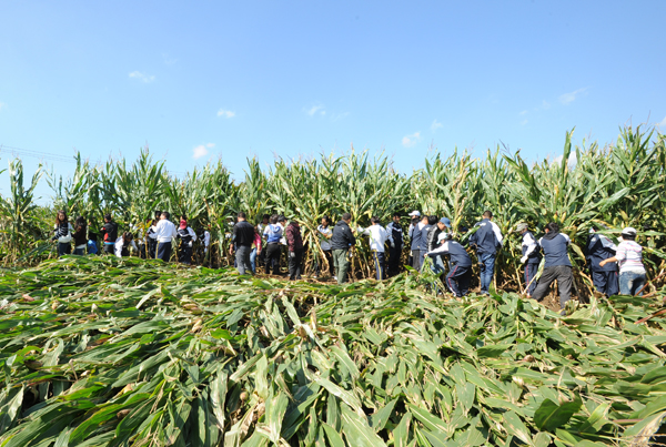 由于台风“布拉万”对四平市东部地区农业生产造成的影响非常巨大,目前抗灾保粮面临的形势十分严峻。我校根据四平市委、市政府抗灾保粮紧急会议精神,积极号召广大师生参与抗灾保粮行动。9月4日下午,学校专门召开紧急会议部署抗灾保粮行动,号召全校师生要认识到这次活动的重要意义,积极投身到这次“抗灾保粮”的行动中,以实际行动帮助广大农民克服困难,为四平市的经济社会发展做出应有的贡献。9月5日早8点,500余名师生准时出发,奔赴灾区。在田间地头,广大师生认真学习“绑扶”技术,努力帮助农民减少损失。在炎炎烈日下、在泥泞的田间,广大师生3-4人一组,绑扶倒伏的玉米,帮助受灾农户抗灾保粮。灾区干部群众纷纷表示:“这活干得好,让我们感动,心里暖乎乎的。”