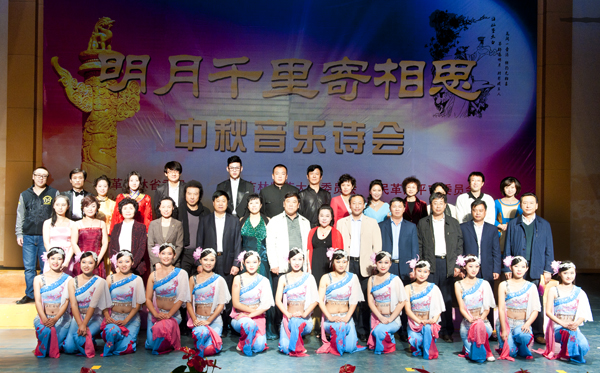 9月28日,为喜迎党的十八大召开、庆祝中华人民共和国成立63周年,在中秋佳节即将来临之际,我校在音乐厅举办“明月千里寄相思”中秋音乐诗会。民革省委副主委郭乃硕,四平市人大常委会副主任、民革四平市委主委袁桂琴,四平市政协副主席、市委统战部部长刘俊玲,我校党委书记张波,校长张伯军,校党委副书记张振华,副校长杨景海、祖国华出席并观看了演出。