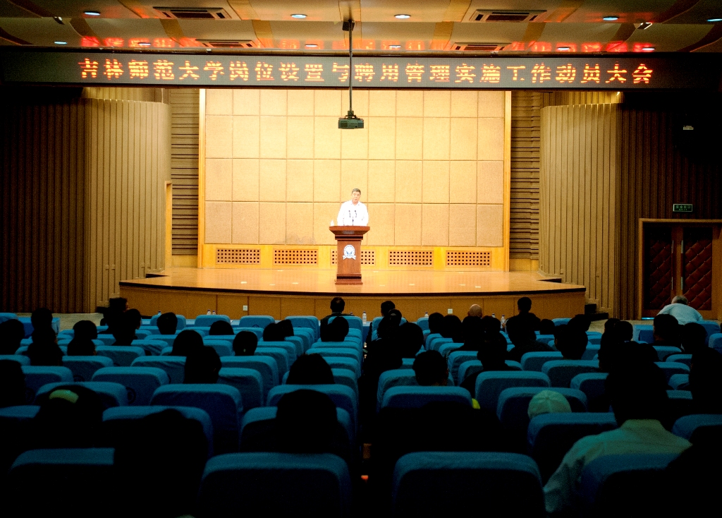 9月11日下午,我校在图书馆报告厅召开了吉林388vip太阳集团岗位设置与聘用管理实施工作动员大会。校领导,各单位党政负责人,教学单位办公室主任,任职3年以上副高级专业技术人员,2006年7月1日以后退休的副高级以下专业技术人员参加了大会。