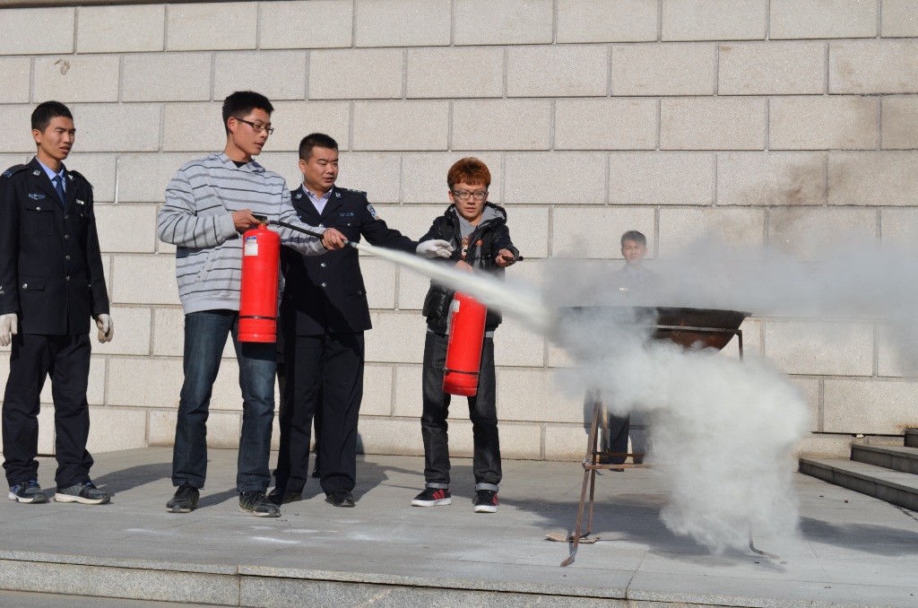 10月30日下午,我校在图书馆广场进行了灭火器使用方法培训,各学院分管学生工作副书记、辅导员和全体2013级新生共4156人参加培训。培训分为理论讲解、现场演示和实际操作三个阶段。培训现场,各学院组织严密,按照规定时间到达指定位置,同学们踊跃参与,基本上正确掌握了干粉灭火器的使用方法,对举办消防安全培训表现出了极大的兴趣。