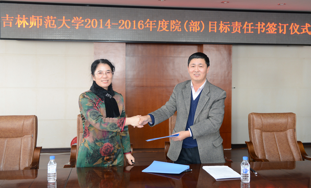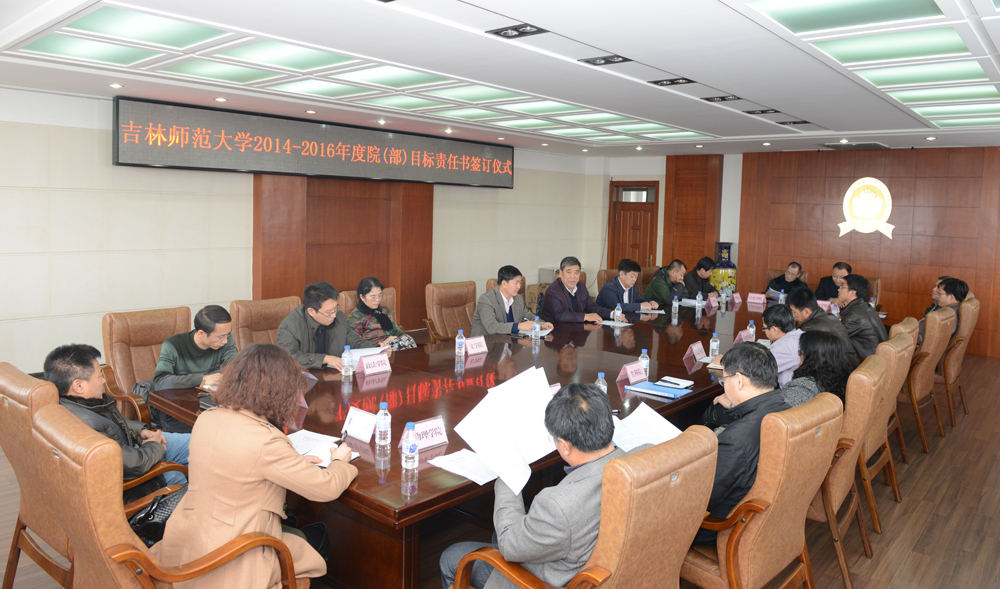 11月20日下午,学校在第一教学楼八楼会议室举行吉林388vip太阳集团2014—2016年度院(部)目标责任书签字仪式。学校党委书记张波、校长杨景海出席签字仪式,各教学单位、部分职能部门负责人参加了签字仪式。