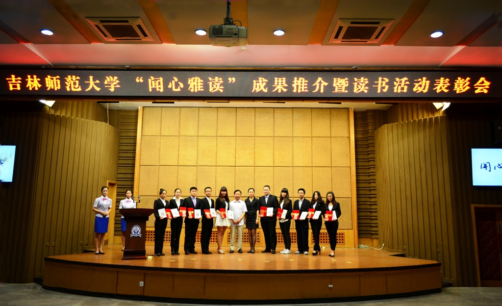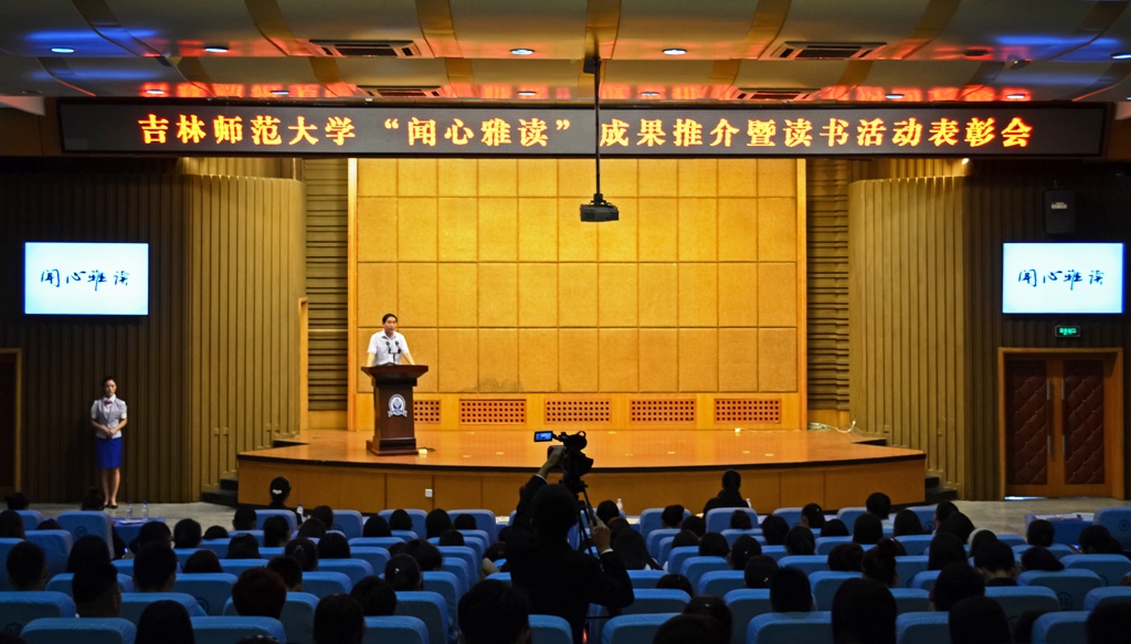 为总结两年来读书活动成果,表彰在活动中涌现的先进集体和个人,进一步推进书香校园建设,6月11日下午,我校在图书馆报告厅举行“闻心雅读”成果推介暨读书活动表彰大会。校党委副书记高林波出席会议,东北文化研究中心以及校院两级团委相关人员和学生代表300余人参加会议。
