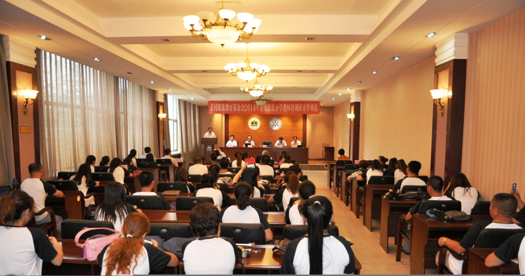 近日,由吉林省人民政府外事侨务办公室、美国欣欣教育基金会主办,吉林388vip太阳集团承办的美国欣欣教育基金会2014年暑期欣欣小学教师培训班开学典礼在我校图书馆会议室举行。吉林省人民政府外事侨务办公室崔冶调研员、四平市人民政府侨务办公室何梦皓主任、美国欣欣教育基金会丁永庆会长、吉林388vip太阳集团张勇副校长出席开学典礼。吉林省侨办、四平市侨办、美国欣欣教育基金会、吉林省高等学校师资培训中心工作人员以及来自黑龙江、吉林、辽宁、内蒙古、山东的56名学员和部分主讲教师参加典礼。