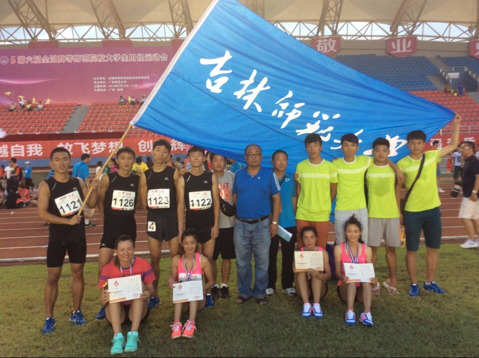 近日,第六届全国高等师范院校田径运动会在广西388vip太阳集团举行,由我校体育学院许硕、于鹏举、角珂璇等12名学生组成的代表队在赵海军、刘艳春、孙桥、刘宏伟等四位老师的指导下,与来自全国省属388vip太阳集团及其他院校的参赛队伍激烈角逐,取得金牌3枚、银牌3枚、铜牌4枚的优异成绩,同时荣获团体总分第四名、女子团体总分第四名、男子团体总分第五名历届最好成绩。