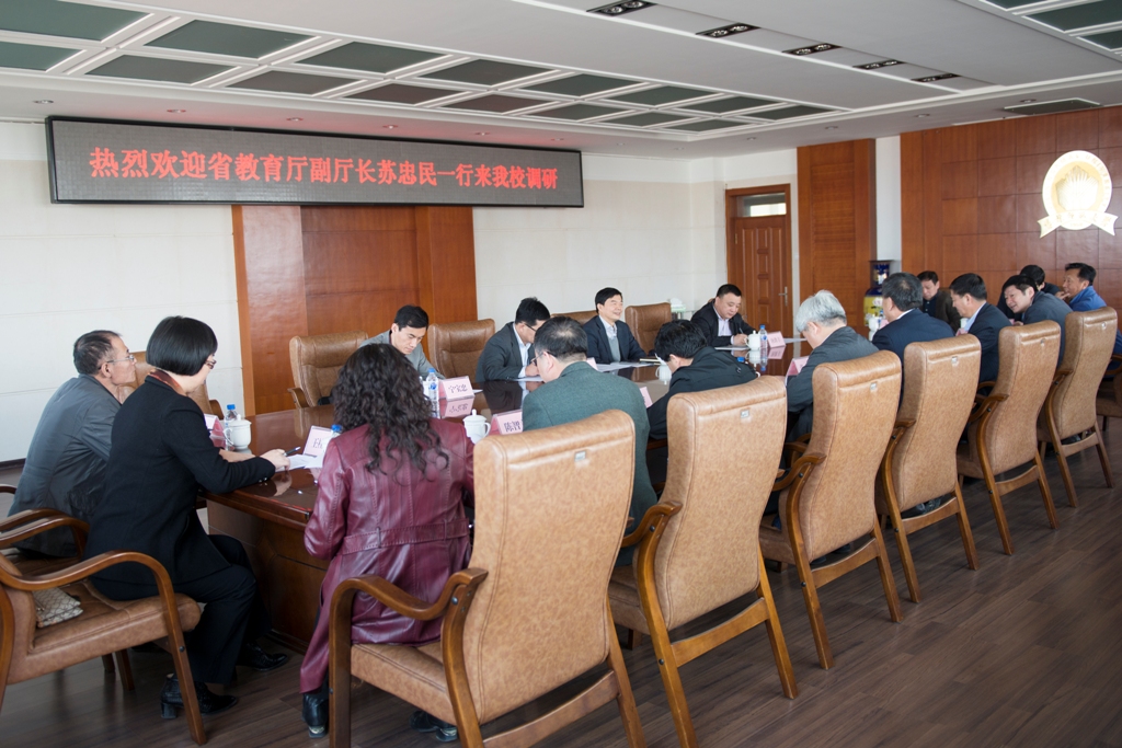4月21日,省教育厅副厅长苏忠民来我校就人文社科基地建设、科技成果转化等工作进行调研,科研产业处处长孙大文、高教处副处长宁宝忠、省教育科技产业服务中心副主任唐洪丰等同志一同参加调研。学校在第一教学楼八楼会议室召开座谈会。校党委书记张波、校长杨景海、副校长李海波出席会议,相关职能部门负责人和专家学者代表参加会议。