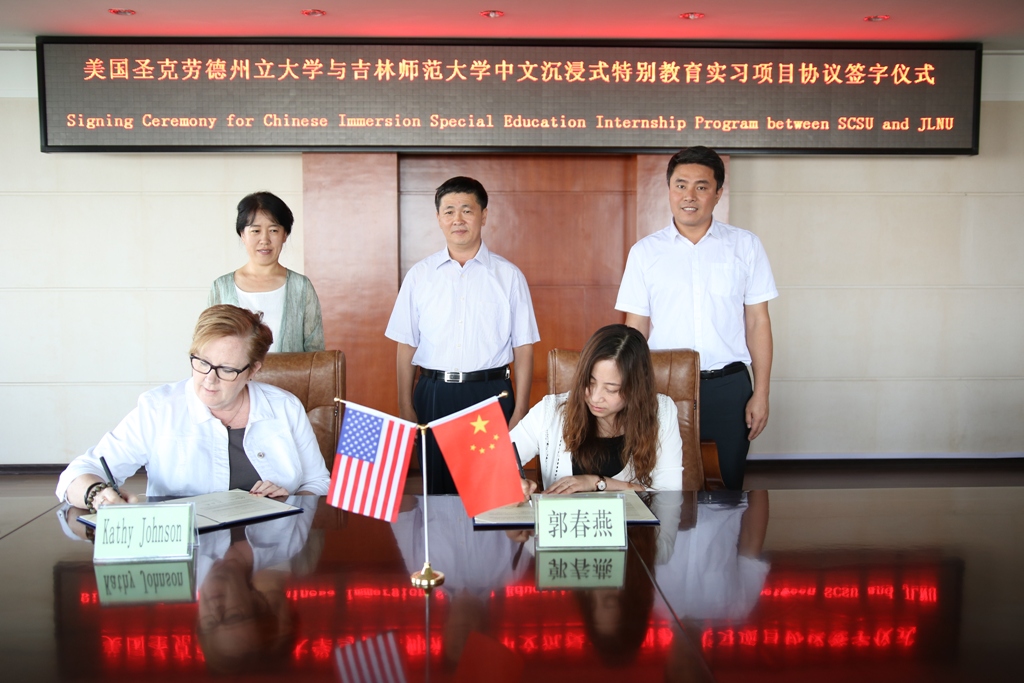 6月13日,美国圣克劳德州立大学孔子学院院长Kathy Johnson女士、中方院长周丽新、博士项目中心主任John Eller博士、索克莱匹兹莱斯小学Susan Paasch校长在吉林省对外汉语教学培训中心项目负责人的陪同下,对我校进行了友好访问。校长杨景海在第一教学楼八楼会议室会见了来访客人。