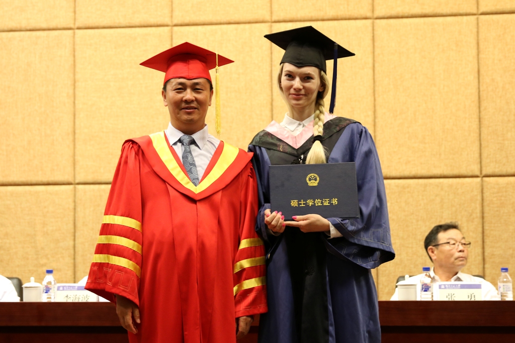 校长杨景海教授为2016届获硕士学位留学生代表授予学位