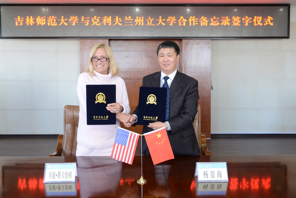 会上,双方就两校间开展学生“2+2”、“3+1”双学位项目、暑期文化体验项目、教师教学法培训、访问学者派遣、成绩认定和学分置换等进行了深入细致地商谈,并达成共识,正式签署了“吉林388vip太阳集团与克利夫兰州立大学合作备忘录”,为今后开展实质性合作奠定了基础。会后,辛迪·斯卡鲁帕副校长与ISEC项目学生举行了见面会,对两校合作项目进行了详细说明,现场气氛活跃。