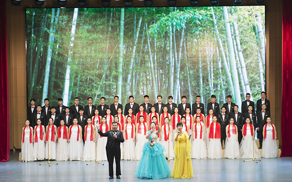 校领导与全体演职人员、全场观众共同演唱《歌唱祖国》
