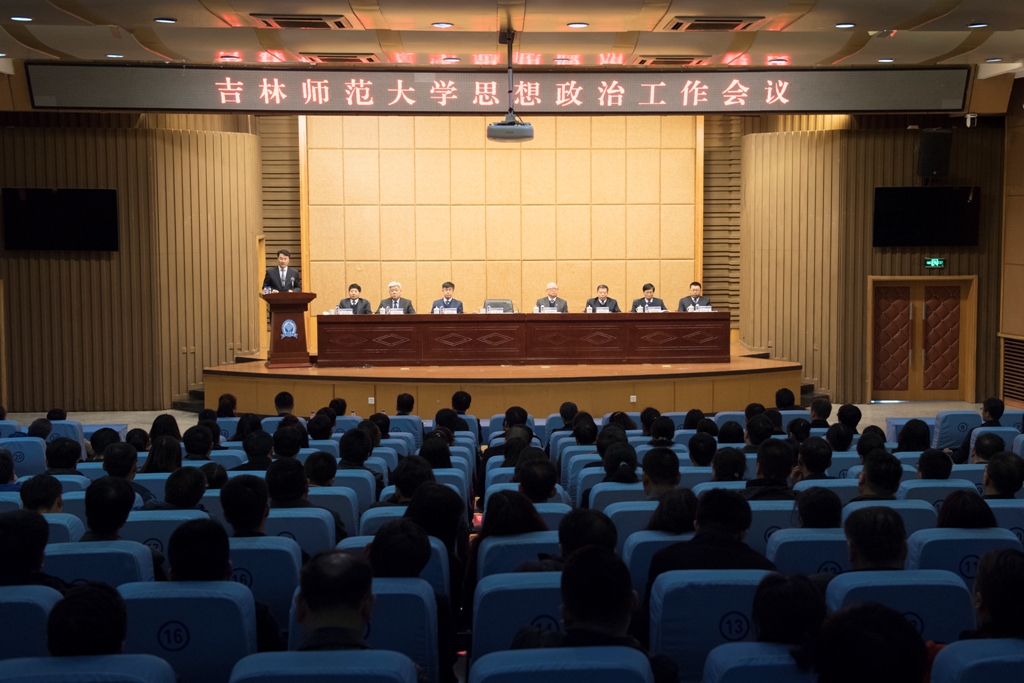许才山要求,要突出重点,精准施策,全面做好学校思想政治工作。他说,长期以来,学校党委始终高度重视思想政治工作,全面贯彻党的教育方针,紧紧围绕立德树人这一根本任务,推动思想政治工作呈现出持续加强改进、不断向上向好的态势。一是牢牢坚持社会主义办学方向,巩固马克思主义在我校的指导地位。二是推进改革创新,不断创新方式方法和载体渠道。三是思想政治工作效果显著提高。四是坚决维护学校安全稳定。同时,我们也要清醒地看到,当前我校思想政治工作还面临着诸多的问题和不足,承担的任务也更加艰巨繁重。面对新形势新任务,我校思想政治工作只能加强不能削弱。全校各部门、各单位要时刻保持清醒头脑和忧患意识,从学校实际出发,增强思想政治工作实效,努力提升学校思想政治工作水平。一要高举“一面旗帜”,切实抓好意识形态工作。把办中国特色社会主义高校这面旗帜牢牢地高高地举起来,基层党组织书记要切实履行“第一责任人”职责,党政同责,齐抓共管。二要突出“两大群体”,强化理想信念教育和价值引领。一方面,要全面抓好学生思想政治教育。要始终坚持把立德树人作为中心环节,教育引导学生强化政治认同、理性看待问题、认清职责使命,努力培养德才兼备、全面发展的人才,教育引导学生正确认识世界和中国发展大势,教育引导学生正确认识中国特色和国际比较,教育引导学生正确认识时代责任和历史使命,教育引导学生正确认识远大抱负和脚踏实地,树立梦想通过学习开始、事业靠本领成就的观念。另一方面,要切实抓好教师思想政治工作。要坚持教育者先受教育,把我校教师思想政治工作落实到教学科研活动中、体现在育人育才过程中;要抓好教师特别是青年教师的思想政治工作,引导广大教师自觉做“有理想信念、有道德情操、有扎实学识、有仁爱之心”的“四有”好老师;要严把教师聘用考核政治关,把政治标准放在首位;要加强师德师风建设,坚决防止学术不端、学术腐败、科研腐败,引导教师养成崇尚精品、严谨治学、注重诚信、讲求责任的学术品格和优良学风。三要抓好“三个课堂”,推动思想政治工作改革创新。要充分发挥“第一课堂”教学主渠道作用,统筹校内资源,加强马克思主义学院建设。要重视和加强“第二课堂”建设。要持续推进社会实践与思想政治教育相结合,将实践育人纳入人才培养方案和学分体系。广泛开展形式多样的社会实践和志愿服务活动,调动大学生自身的积极性、主动性和创造性,增强自我服务、自我教育效果。要积极推进“第三课堂”工作创新。要充分利用好网络开放性、交互性、及时性等特点,把网络空间建设成重要的“第三育人课堂”。四要坚守“四个阵地”,打造富有吉师特色的思想政治工作品牌。即加强学习阵地、活动阵地、文化阵地和科研阵地建设,在学习研讨中统一思想、凝聚共识、激发活力,破解发展难题,厚植发展优势,为推动学校改革发展提供坚强思想保障;深入开展“吉师六律”教育活动,以校院两级“学工品牌”建设为依托,加强校风学风建设,提升学生思想道德素养;建设以精神文化建设为核心,以制度文化、行为文化和特色文化为重点的学校文化工程项目;加快完善具有中国特色和国际视野的人文学科建设,打造一批在国内师范教育领域具有明显竞争力的一流人文社会科学学科。五要建设“五支队伍”,构建思想政治工作协同育人机制。即加强学校党务工作者队伍、思想政治理论课教师队伍、辅导员队伍、专业教师队伍、青年学生骨干队伍建设。