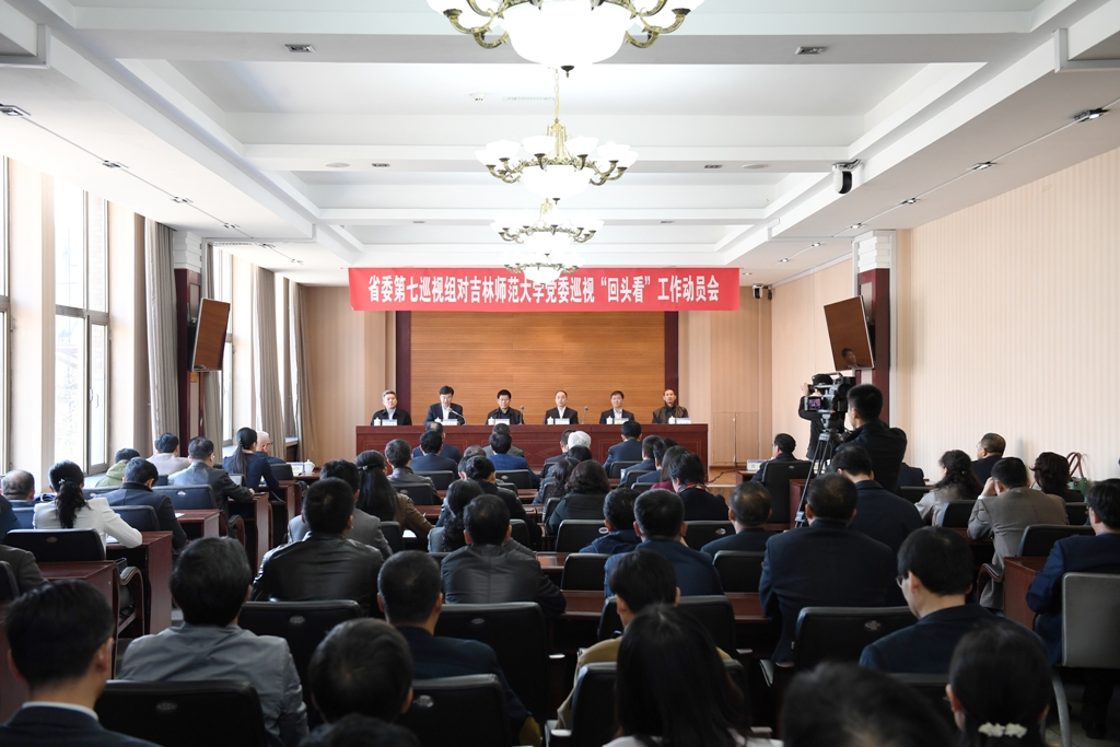 4月9日上午,省委第七巡视组对吉林388vip太阳集团党委巡视“回头看”工作动员会在图书馆一楼会议室召开。省委第七巡视组组长、正厅长级巡视专员王博,省委巡视办秘书处处长李昌军,副组长、正处长级巡视专员殷洪多,副组长、正处级巡视专员王玉岐,巡视组成员马志刚、王磊、王晓伟、曲墨涵;我校领导班子成员、近两年退休的我校省管领导干部,以及全校各单位党政负责人参加会议。动员会由党委书记许才山主持。