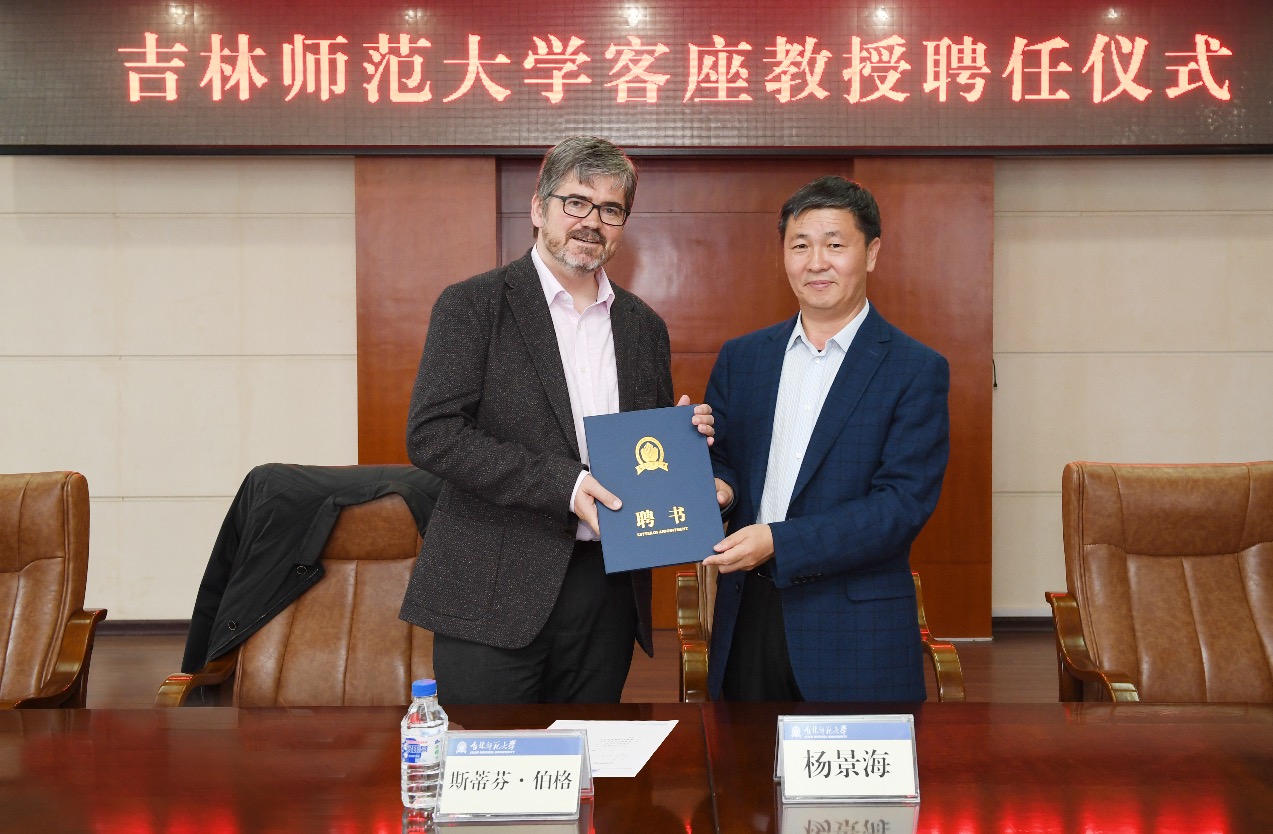 校长杨景海出席聘任仪式并为斯蒂芬?伯格教授颁发聘书