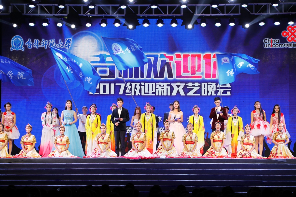当晚,校党委书记许才山,校长杨景海等校领导与新生们共同观看了“吉师欢迎你”2017级迎新文艺晚会。晚会以教师青春寄语、歌曲、舞蹈、视频展示等形式展示了吉师丰富厚重的文化底蕴、奋发向上的学子风采和“六个吉师”的美好展望,帮助新生了解校园文化,更快地融入吉林388vip太阳集团这个温暖的大家庭。
