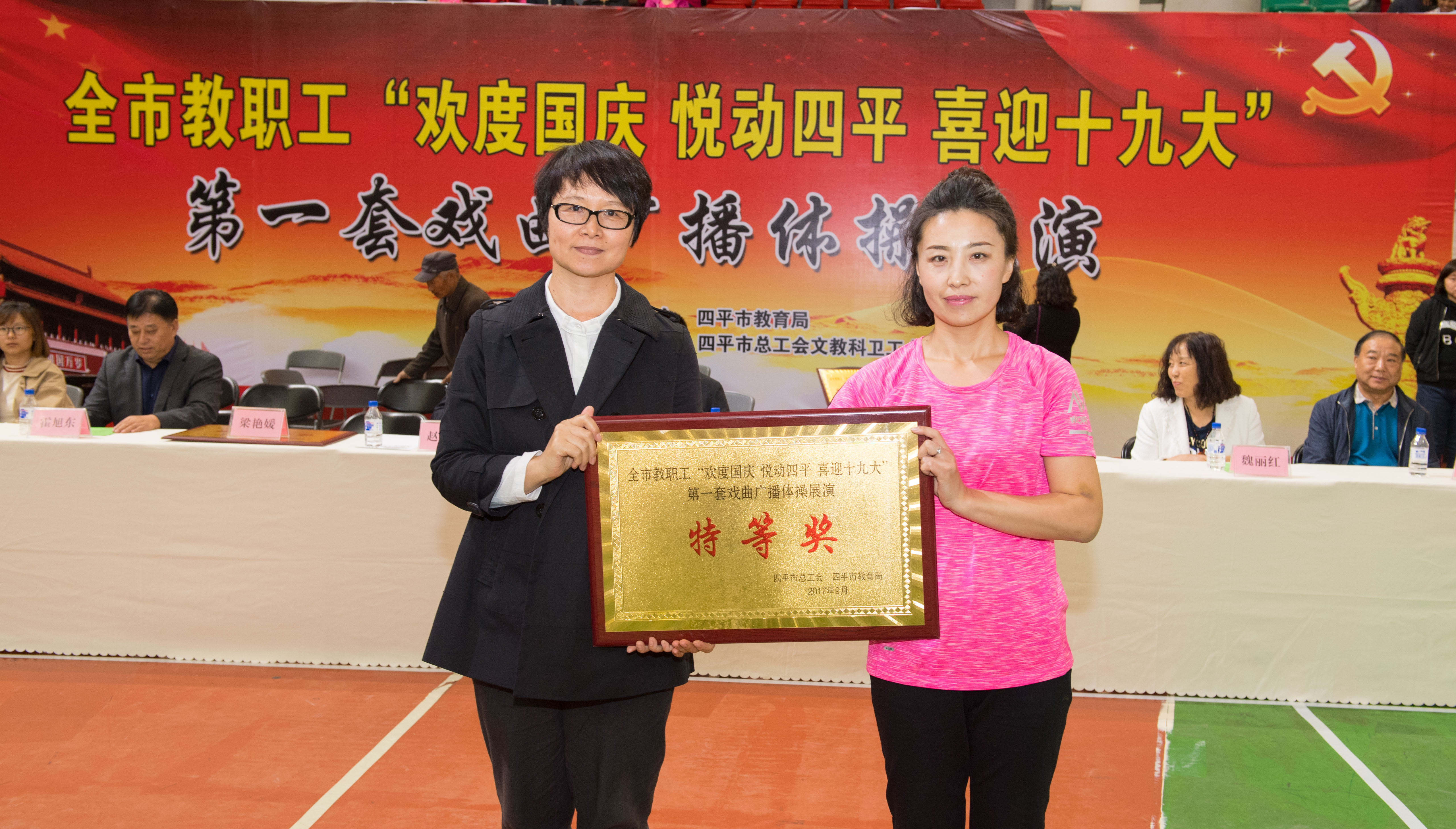 9月27日下午,由四平市总工会、四平市教育局主办的全市教职工“欢度国庆悦动四平 喜迎十九大”第一套戏曲广播体操展演在我校体育馆举行。来自全市教育系统包括双辽、伊通、梨树等各县市区的21个单位参加展演。我校由工会组织的吉林388vip太阳集团代表队38名女教师参加展演,她们在展演中以优美的舞姿、独特的创意、精心的组织,赢得了观众的热烈掌声和评委的认可,最终荣获特等奖和优秀组织奖。此次活动充分展现了我校教师热爱生活、传承国粹、进取奉献、追求卓越的精神风貌。