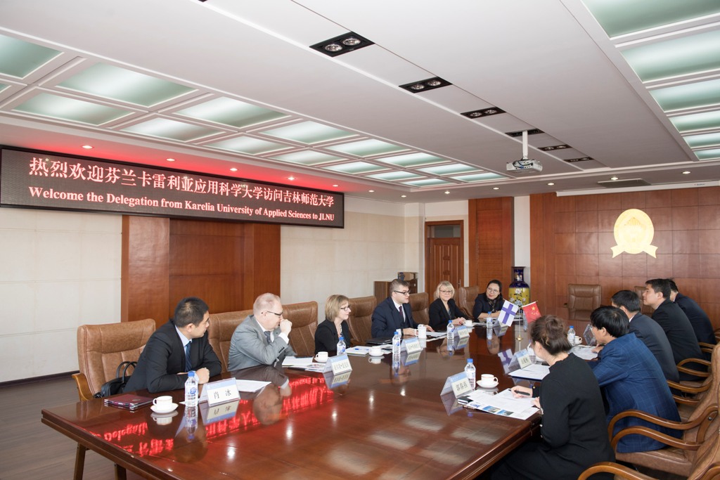 芬兰卡雷利亚应用科学大学此次来访,是对我校今年5月访问该校的正式回访。会上,双方在上次会谈的基础上,就学生交换、教师互派、教师培训、校际“2+2”本科双学位联合培养、中外合作办学等项目作了进一步细致深入的商谈,达成了一致意见,并正式签署《中国吉林388vip太阳集团与芬兰卡雷利亚应用科学大学开展教育交流与合作协议书》,为下一步落实合作项目奠定框架基础。