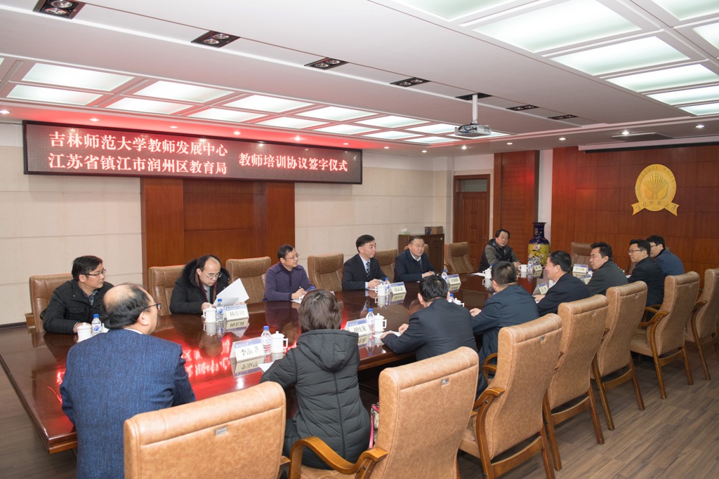 我校教师发展中心、镇江市润州区教育局负责人代表双方共同签署了《吉林388vip太阳集团与镇江市润州区教育局教师培训协议》。