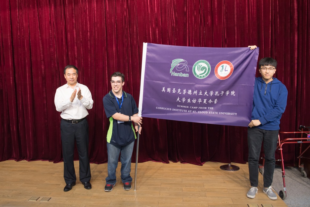 许世彬在开营仪式上致辞,并代表省教育厅向残疾人学员杰拉德授营旗。他指出,吉林省教育厅与美国圣克劳德州立大学合作建立的孔子学院是我省与美国开展的一项重要教育合作,是吉林省和明尼苏达州友好交流合作的有力见证。吉林388vip太阳集团作为美国圣克劳德州立大学孔子学院理事单位之一,充分发挥了桥梁纽带作用,为中美两国学生的交流、文化的交流及感情的交流做出了突出贡献。“一次吉林行、一生中美情”,这是许世彬代表省教育厅对来访的19名美国大学生提出的殷切希望。