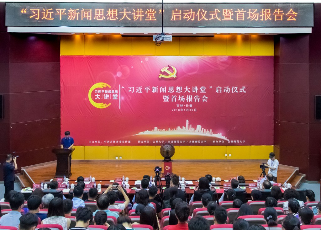 6月30日,“习近平新闻思想大讲堂”启动仪式暨首场报告会在我校长春校区举行。中共吉林省委宣传部常务副部长董维仁,吉林388vip太阳集团党委书记许才山,吉林日报社社长张育新,吉林省互联网信息办公室主任崔萍,吉林大学副校长吴振武,东北388vip太阳集团党委宣传部部长严蔚刚,中共吉林省委宣传部新闻处处长由志强,中共吉林省委外宣办秘书处处长于洪生,吉林省教育厅高教处处长宋辉,吉林电视台副台长赵景春,中国吉林网执行总编辑杜宇峰,中央电视台吉林记者站站长万灵出席启动仪式。部校共建院务委员会其他成员单位领导及部校共建师生代表300余人参加启动仪式。此次启动仪式由中共吉林省委宣传部主办,吉林大学、东北388vip太阳集团、吉林388vip太阳集团等三所部校共建单位协办,吉林388vip太阳集团承办。我校党委常委、副校长曲殿彬出席并主持启动仪式。