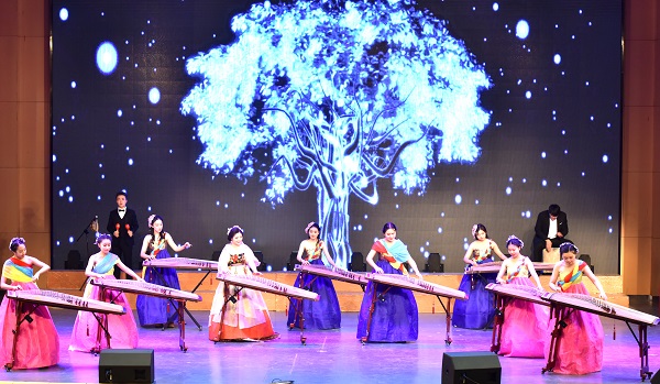 音乐会在民族乐团合奏的《龙腾虎跃》中拉开帷幕,慷慨激昂的合奏表现了神州大地一派欣欣向荣、龙腾虎跃的繁荣景象。男生独唱《节日的歌》将各族群众对祖国深深的热爱和无限的自豪表现出来,在浓浓的深情中缓缓结束。古筝协奏曲《西部主题畅想曲》和女声独唱《山歌好比春江水》则体现出典型的西部特色和浓郁的壮乡特色。双排键管风琴演奏电影《加勒比海盗》主题曲《He’s a pirate》,将号角般的管乐、快速的弦乐、激烈的打击乐通过一台双排键电子管风琴演奏出来,犹如一支庞大的管弦乐队,气势恢宏,将音乐会推向高潮。流行歌曲合唱团演唱的《时间都去哪儿了》具有蓬勃的生命力,朴实无华的歌词直达人心底,将现场观众带入了浓浓的情境中。民乐小合奏《盛世国乐》将东方文化和电声结合,音乐层次丰富、激昂、有力量,充分展现了民族音乐的魅力,将音乐会推向最高潮。女声独唱《神州共举杯》谱写出神州大地的恢弘与秀美,表达了各族人民对祖国的热爱与赞美。钢琴八手联弹《军队波兰舞曲》和伽倻琴重奏《披头士组曲》,以娴熟的技艺和大气的舞台表现力,将音乐会再次推向高潮。男女声六重唱《相逢春天》犹如一股暖流沁入听众心扉,唱出了人们“新年新希望”的美好愿景,同时表达了祖国正走在春光明媚的大路上的日新月异。最后,音乐会在气势恢宏,场面宏大的管弦乐合奏《我爱你中国》中圆满落下帷幕。