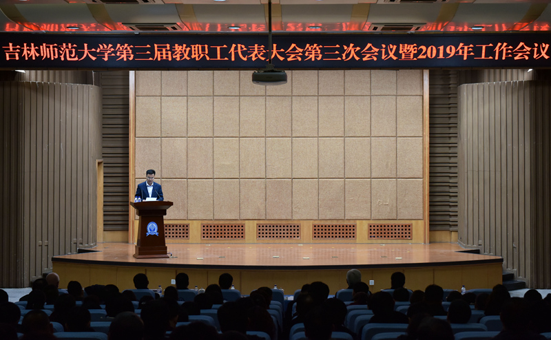 3月6日,我校第三届教职工代表大会第三次会议暨2019年工作会议在图书馆报告厅召开,大会设四平校区和长春校区两个会场。全体校领导、教代会代表及机关部门副科级(含)以上干部、其他各单位副处级(含)以上干部参加会议。会议特邀各民主党派负责人、校关工委负责人、市级以上人大代表和政协委员出席会议。校党委副书记祖国华主持会议。