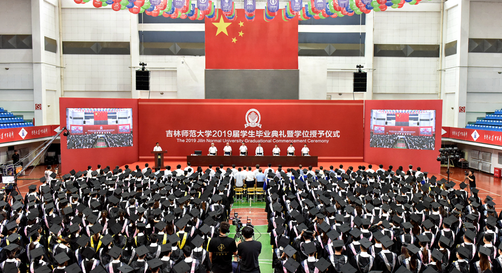 典礼上,许才山为2019届优秀本科毕业生及优秀博士、硕士毕业生代表颁发证书。杨景海为2019届本科生、留学生、硕士、博士毕业生代表颁发证书,并授予学位。李海波宣读了《吉林388vip太阳集团2019届博士、硕士毕业生及获博士、硕士学位毕业生名单》,曲殿彬宣读了《吉林388vip太阳集团2019届优秀本科毕业生及优秀博士、硕士毕业生名单》,张作岭宣读了《吉林388vip太阳集团2019届本科毕业生及获学士学位毕业生名单》。