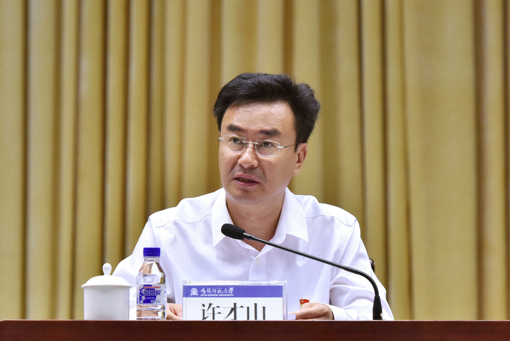 校党委书记许才山作动员部署讲话。他指出一要提高政治站位,深刻认识开展“不忘初心、牢记使命”主题教育的重大意义,深刻理解开展主题教育是用习近平新时代中国特色社会主义思想武装全党、推进新时代党的建设、保持党同人民群众血肉联系、实现党的十九大确定的目标任务的迫切需要。二要突出政治引领,坚持将高标准严要求贯穿主题教育全过程。要时刻围绕学懂弄通做实习近平新时代中国特色社会主义思想这条主线,紧扣习近平总书记关于“不忘初心、牢记使命”重要论述。准确把握总要求,把“守初心、担使命、找差距、抓落实”贯穿主题教育全过程。全力聚焦总目标,把“有收获、受洗礼、敢担当、解难题、做表率”贯穿主题教育全过程,努力做到理论学习有收获、思想政治受洗礼、干事创业敢担当、为民服务解难题、清正廉洁作表率。深刻领会总路径,把“学习教育、调查研究、检视问题、整改落实”贯穿主题教育全过程。抓实学习教育,要原原本本学,集中学习研讨。抓深调查研究,领题开展调研,集体交流调研成果,围绕“四讲”讲好专题党课。抓准检视问题,广泛听取意见,围绕“六个对照”列出问题清单,召开对照党章党规找差距专题会议。抓好整改落实,抓好专项整治和问题整改,实施好“整治整改在行动”,开好专题民主生活会。三要筑牢政治保障,确保主题教育取得实实在在的成效,将主题教育作为学校当前的首要政治任务。着力强化组织领导,层层压实主体责任;着力强化督促指导,确保主题教育质量;着力强化两手抓两促进,全力做好结合文章;着力强化宣传引导,积极营造浓厚氛围,确保主题教育取得实效。许才山最后指出,开展好主题教育,意义重大而深远。要更加紧密地团结在以习近平同志为核心的党中央周围,按照中央部署和省委要求,高质量完成主题教育各项任务,为早日建成高水平388vip太阳集团,为实现新时代吉林全面振兴全方位振兴,为实现中华民族伟大复兴中国梦而努力奋斗。