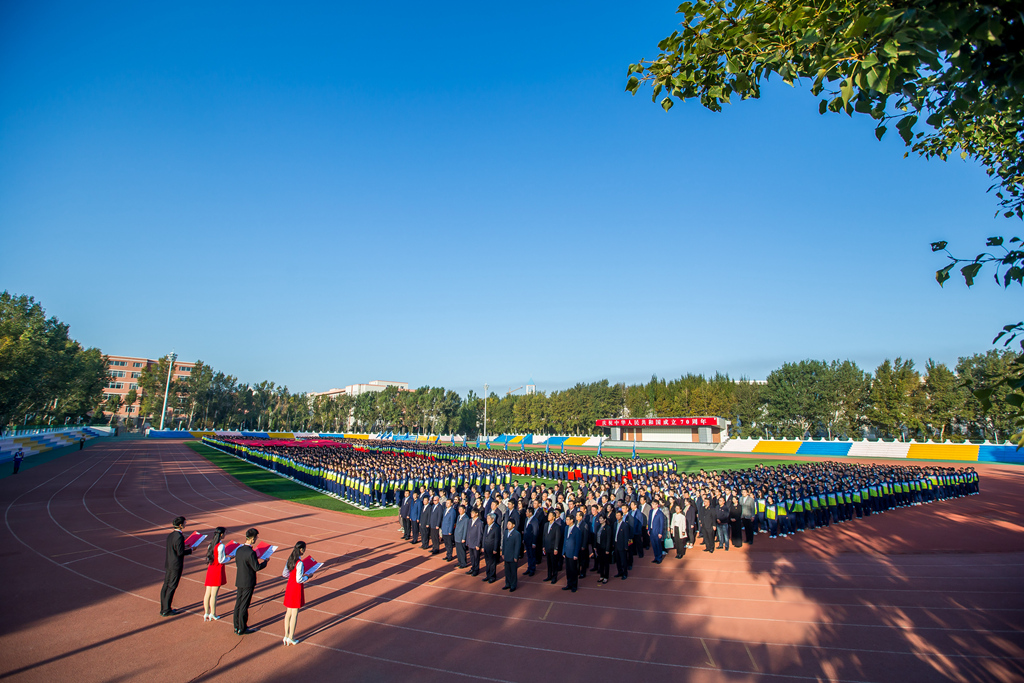 9月29日,学校在田径场举行“庆祝中华人民共和国成立70周年”升旗仪式。学校党委书记许才山,党委副书记、校长杨景海,党委副书记祖国华、刘万民,党委常委、纪委书记侯奎岩,党委常委、副校长李海波、曲殿彬、张作岭、车广波出席升旗仪式,全校各单位党政负责人、全体辅导员以及2019级全体新生共4000余人参加升旗仪式。