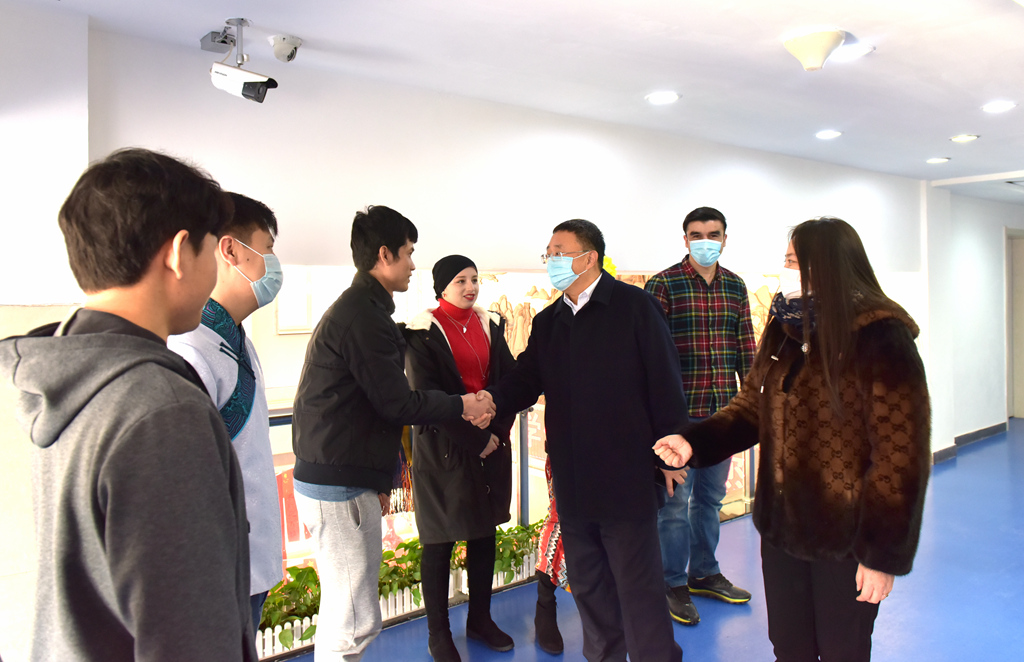 杨小天一行先后走访了后勤保障处、保卫处以及国际文化交流学院等地,认真查看各单位春节期间安全生产、疫情防控等工作,详细了解学校寒假期间值班值守情况,并对疫情防控工作落实情况进行了检查和指导。