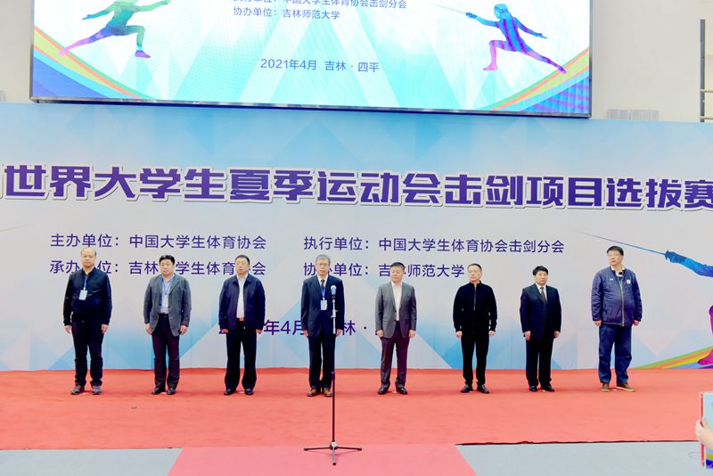 4月10日上午9时,选拔赛开幕式在体育馆举行。教育部学生体育协会联合秘书处副秘书长、中国大学生体育协会副主席兼秘书长张爱龙,校长杨小天,四平市副市长王柏仲,吉林省学生体育协会常务副会长、长春大学副校长陈煜平,中国大学生体育协会击剑分会主席、上海立信会计金融学院副校长赵荣善,校党委常委、副校长张作岭,吉林省教育厅体育卫生与艺术教育处处长胡仁友,中国大学生体育协会击剑分会秘书长李兴林等相关领导出席开幕式。各参赛高校领队、教练及运动员,我校部分师生参加开幕式。张作岭代表学校致欢迎辞,王柏仲代表四平市委市政府致辞,赵荣善代表击剑分会致辞,张爱龙宣布比赛开幕。